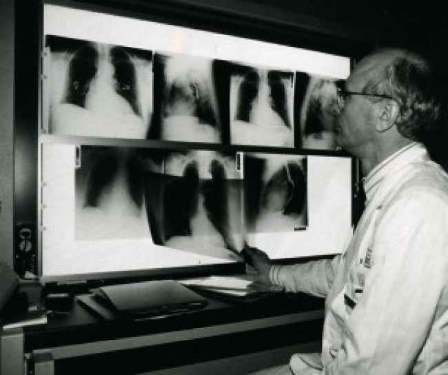 La tuberculosis fue históricamente una de las principales causas de muerte en Estados Unidos. En 1943, el Dr. Selman Waksman y Albert Schatz descubrieron la estreptomicina, el primer tratamiento eficaz para la enfermedad. Nuestra empresa había apoyado el laboratorio de investigación del Dr. Waksman y poseía los derechos de patente del nuevo medicamento. Una vez que se reconocieron sus importantes beneficios para la salud, la empresa renunció a su patente exclusiva sobre el antibiótico para garantizar el máximo acceso a pacientes.